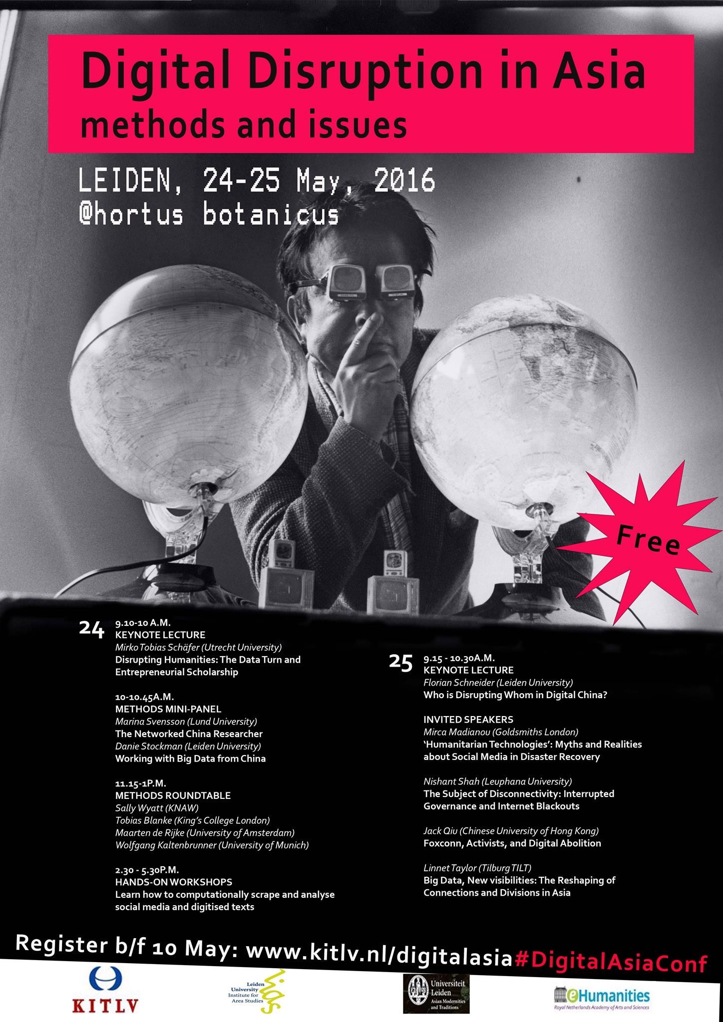 Digital Disruption in Asia: Methods and Issues How are internet technologies assimilated and understood in Asia compared to other parts of the world? In what ways does the internet challenge or reinforce established political and economic institutions in Asia? What effect does the everyday use of digital technologies have on the development of language, religion and popular culture in the region? |